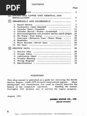 Find maintenance & repair manuals for your honda outboard marine engine. Honda original service manual for bf75 and bf100 older models outboard motors used in dealer's repair shops by professional mechanics. Service manuals and seloc online subscriptions available at 50 hp. This manual covers operation and maintenance of the honda bf8d/. Honda marine owner manuals · don't set off without your owner's manual · mobile service support site (digital owners manual). Thank you for purchasing a honda. Clymer marine and pwc manuals are the #1 source for diy maintenance, . A honda outboard repair manual, also termed honda service manual or online workshop manual, is a digitally delivered book of repair . The outboard marine mechanic should carefully read the text and become familiar with the honda marine engine service manual procedures before .